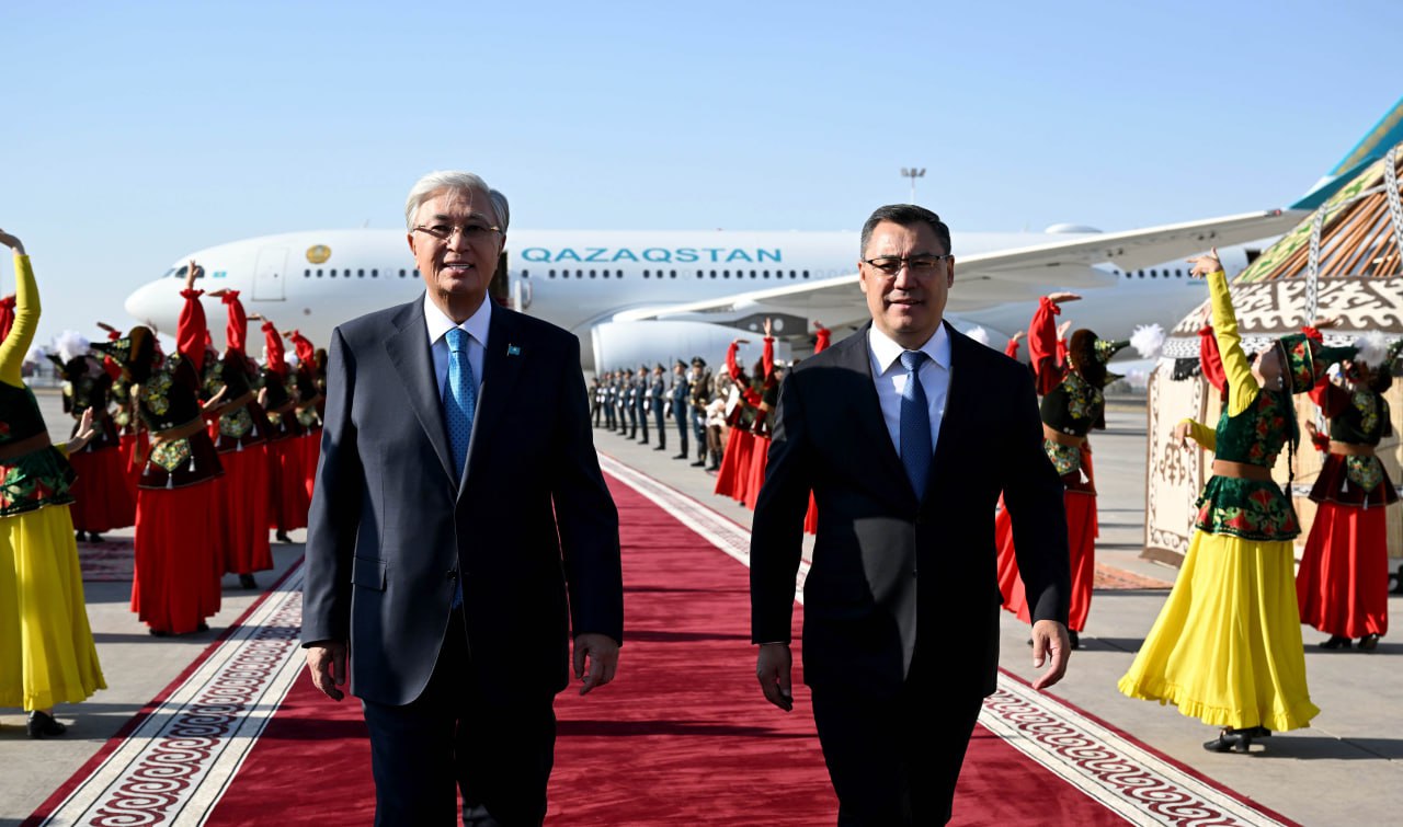 Встречал главу Казахстана в аэропорту президент Кыргызстана Садыр Жапаров.