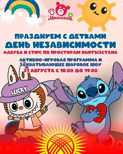 Вас ждут Лабуба и Стич, игры, шаровое шоу, веселые конкурсы, море улыбок, радости и праздничного настроения.