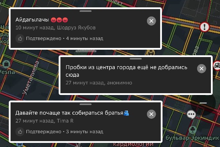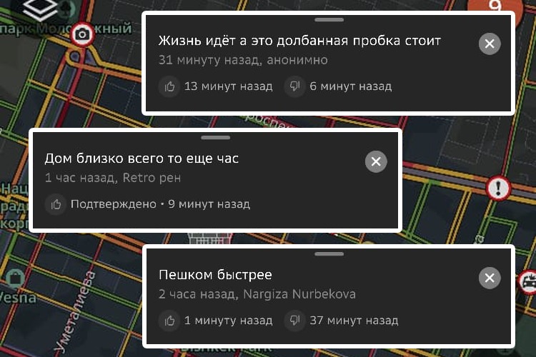 Но, застряв в километровых заторах, горожане нашли способ выплеснуть эмоции — через комментарии на онлайн-картах. Там вместо сухих отметок о задержках появляются целые зарисовки о буднях в пробках.
