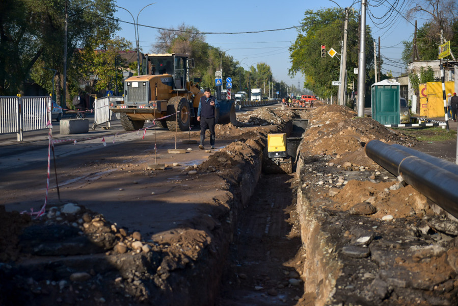 Глава города посетил проспект Дэн Сяопина, где проводится реконструкция дороги и тротуара от улицы Фучика до улицы Алыкулова (северная сторона). Параллельно заменяются и водопроводные сети.