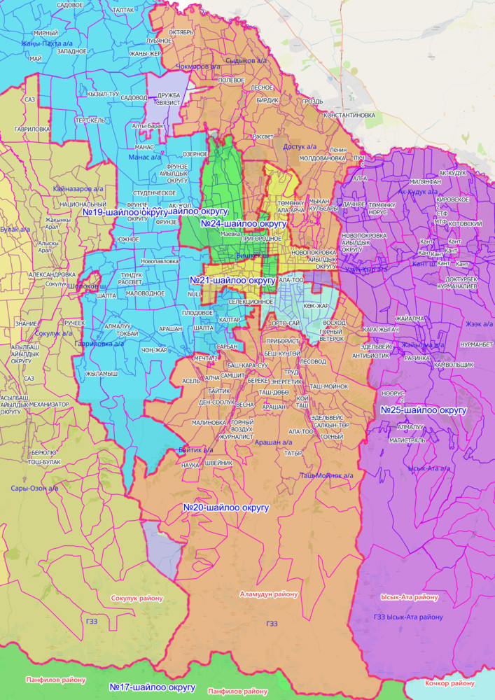 Центральная избирательная комиссия Кыргызской Республики представила обновленную карту избирательных округов. Документ опубликован на официальном сайте ЦИК.