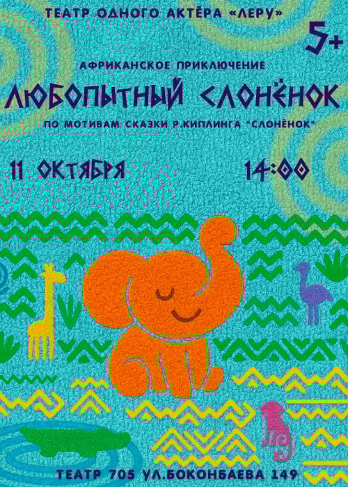 Куклы, созданные в технике «оригами из полотенца» (специально адаптированной для сцены), оживают на глазах зрителей, превращаясь в африканских животных. Все роли воплотит и озвучит одна актриса.