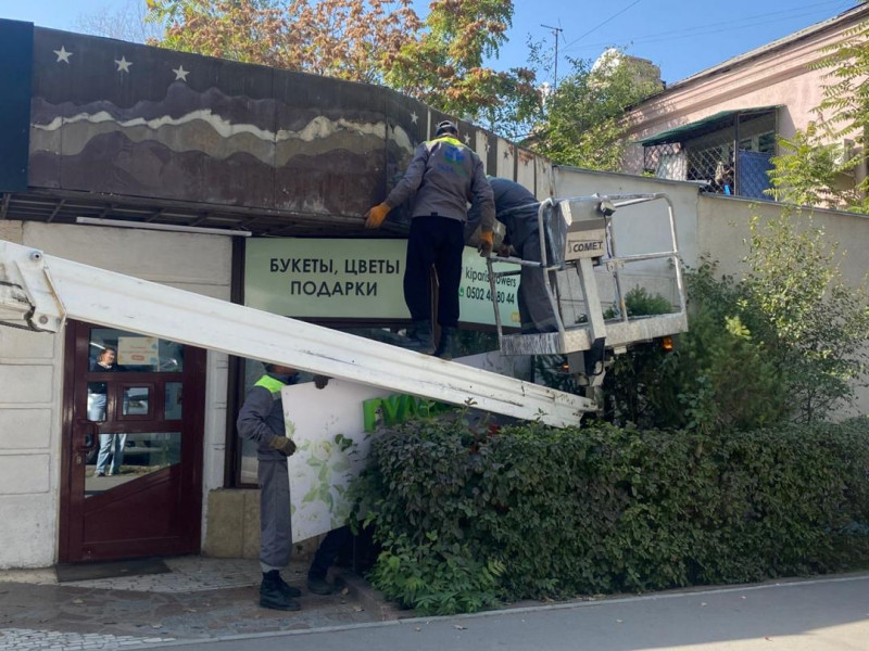 В Бишкеке демонтируют рекламные вывески, нарушающие закон о госязыке