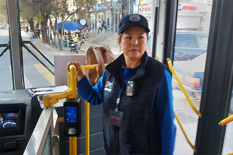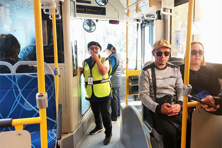 Фото 24-kg.com. Контролер входит в автобус и здоровается с пассажирами
