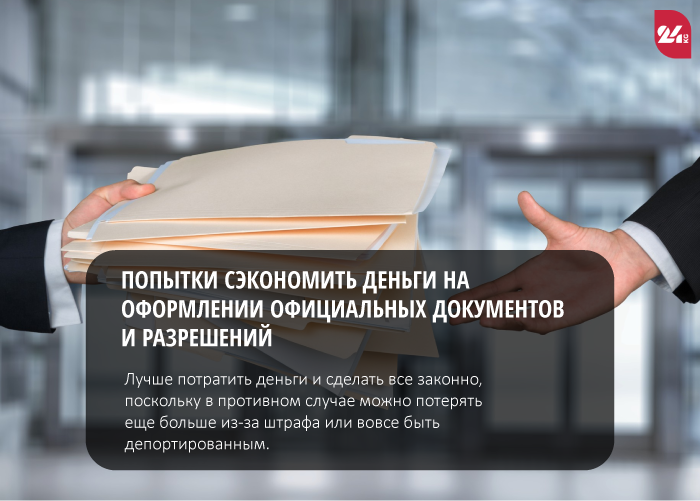 Эксперт по личным финансам отмечает, что разрешения, налоги, медицинское страхование и так далее — это обязательные расходы и избегать их не стоит. Например, из-за отсутствия официального разрешения на работу мигрант может быть оштрафован на сумму, более высокую, чем стоимость получения разрешения. Известны также случаи, когда мигранты покупали разрешения через знакомых за более низкие цены, но потом выяснялось, что они были поддельными. Таким образом, появляется риск быть депортированным.