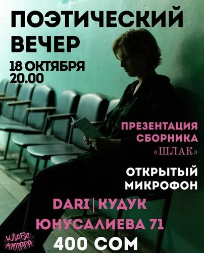 Поэтесса Клара Кипара презентует свой сборник «Шлак». А если ты сам пишешь — будет открытый микрофон. Регистрация по телефону 0551266144.