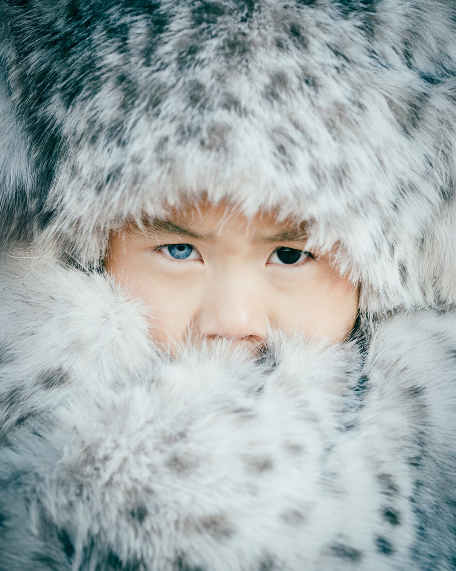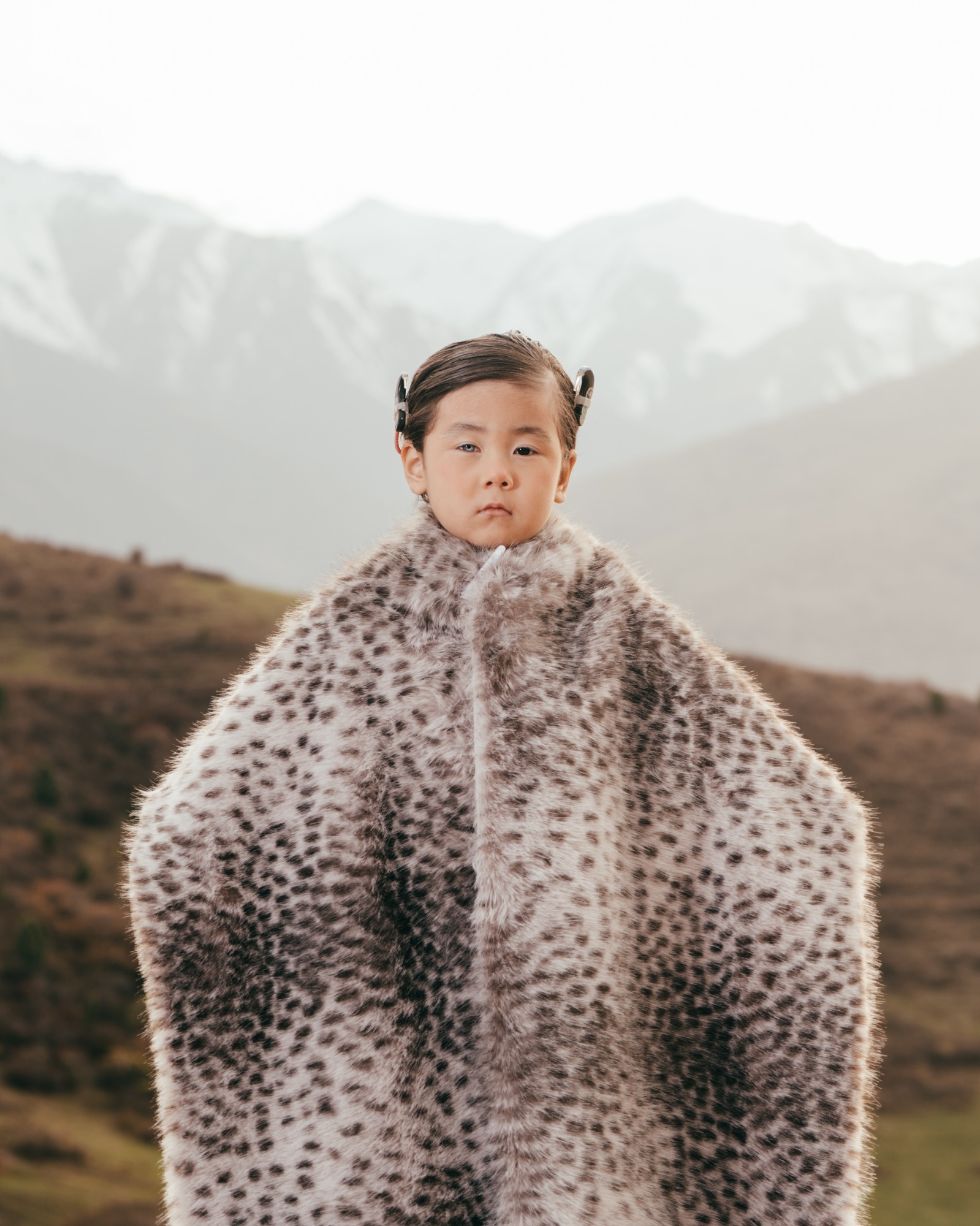 В социальных сетях фотограф Иван Рясков поделился последней работой в рамках проекта «40 женщин» — фотографией девочки, укутанной в шерсть снежного барса.