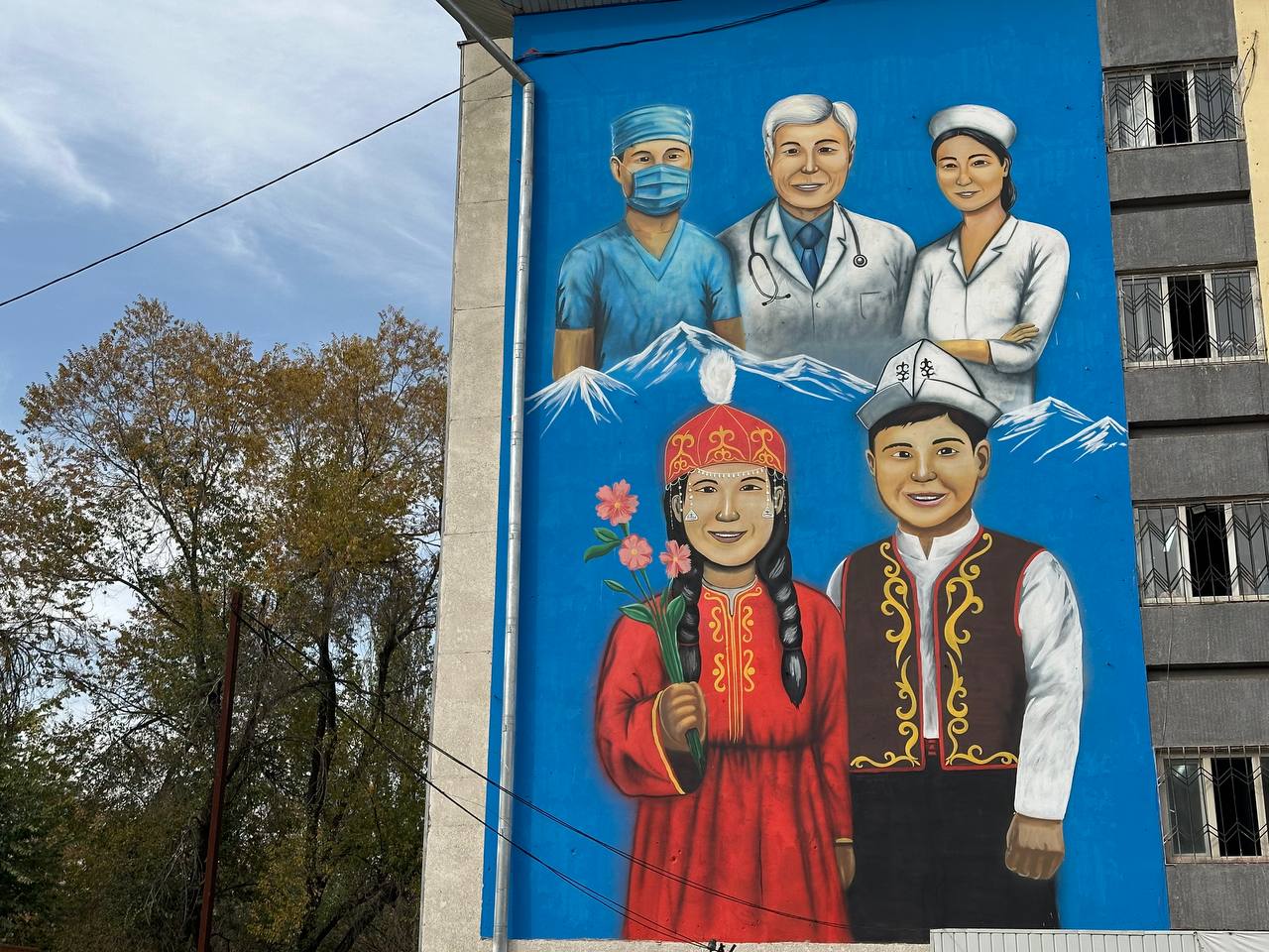 В Бишкеке, на пересечении улиц Тыныстанова и Суеркулова, на здании медцентра Кыргызской государственной медицинской академии появился новый мурал.