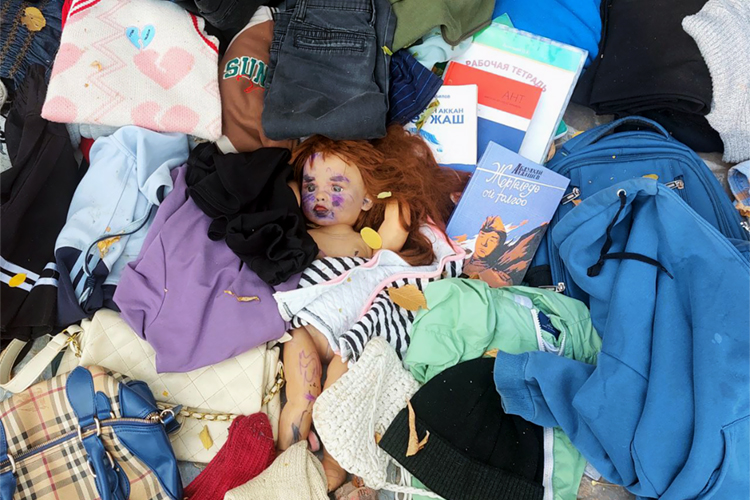 Пенсионерка торгует детскими вещами. Она говорит, что это одежда внучек, которые выросли. Бабушка выходит на рынок не часто, за день может продать товар на сумму от 100 до 500 сомов. Бывают дни, когда покупателей нет совсем.