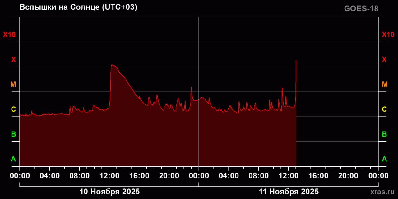 Отмечается, что по потоку излучения событие в три-пять раз превышает все вспышки этого года. По энергии — оценочно в 10-20 раз.