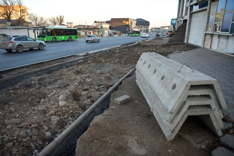 По его данным, на улице Курманджан Датки (от проспекта Жибек Жолу до проспекта Чуй) продолжается строительство тротуаров. Здесь работы идут с задержкой из-за переноса инженерных коммуникаций.