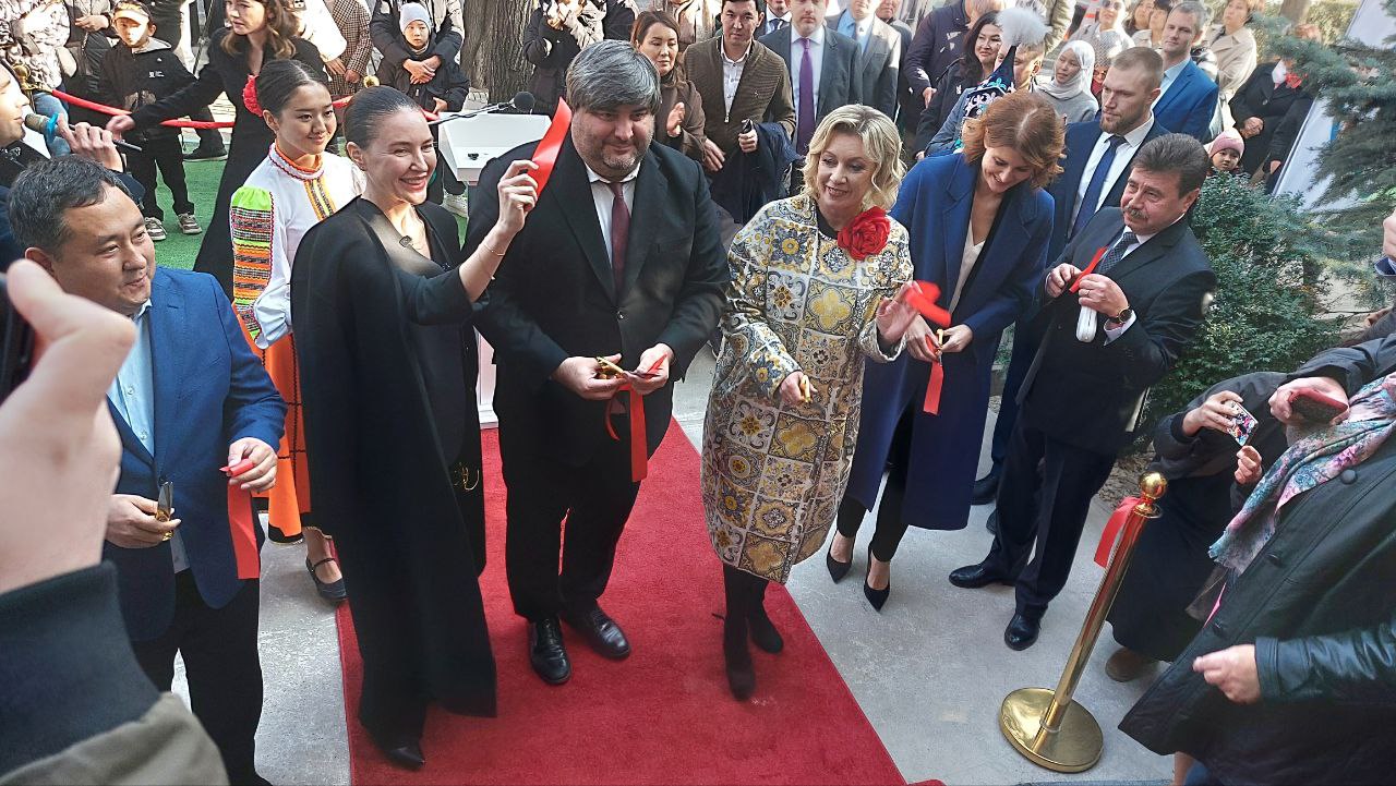 По случаю открытия центра в Бишкек прибыли официальный представитель МИД РФ Мария Захарова, начальник управления президента РФ по стратегическому партнерству и сотрудничеству Вадим Титов, главный редактор российского телеканала «НТВ» Александра Кошарницкая.