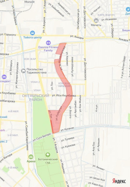 • улицей Куланак по Молдокулова и улицей Куйручук до Кулмурзаева;