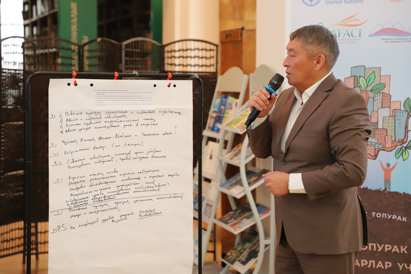 Эрмек Байбагышов, директор Общества почвоведов Кыргызстана, отметил, что «запечатывание почвы, загрязнение и расширение городов ставят под угрозу важнейшие экосистемные функции, увеличивая риски и усиливая эффект «тепловых островов» в городской среде».