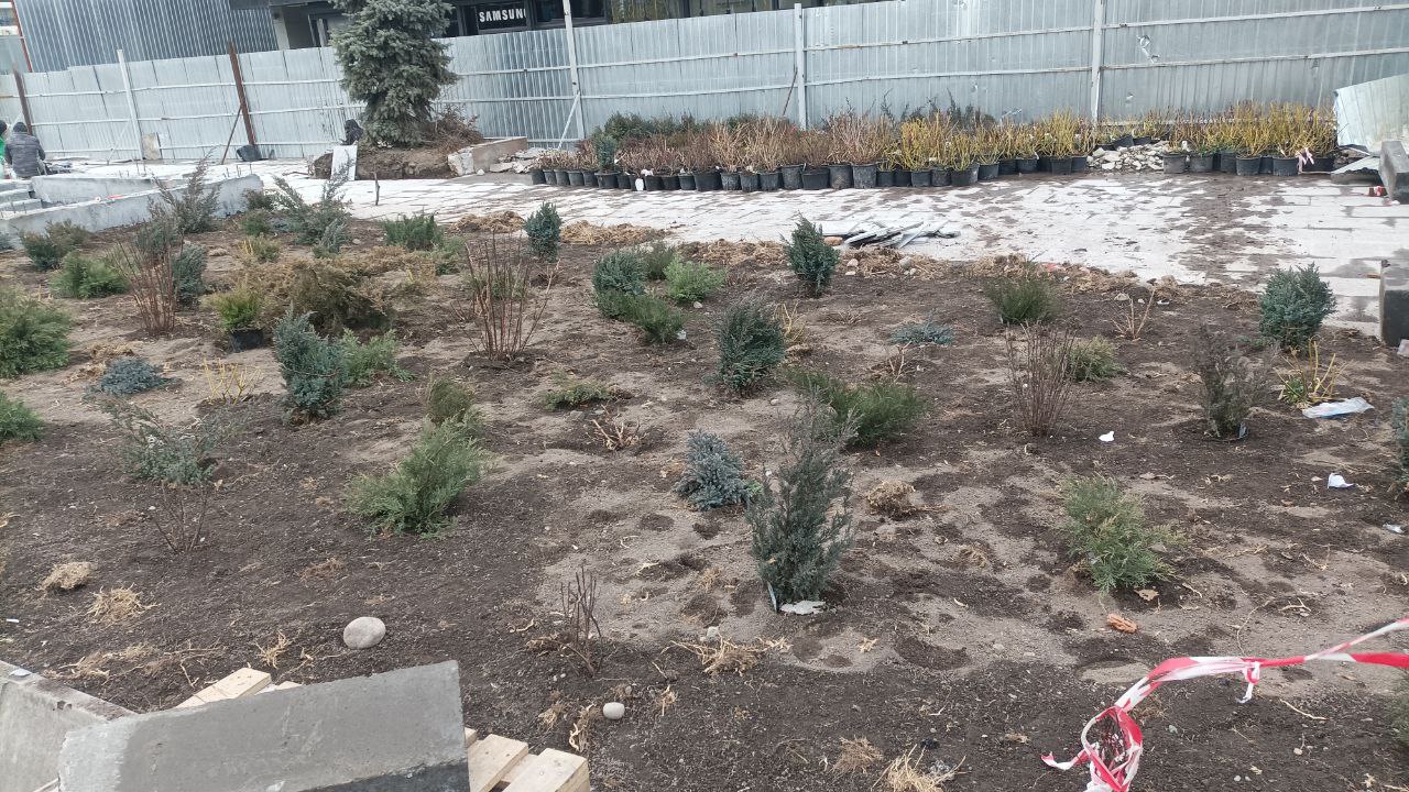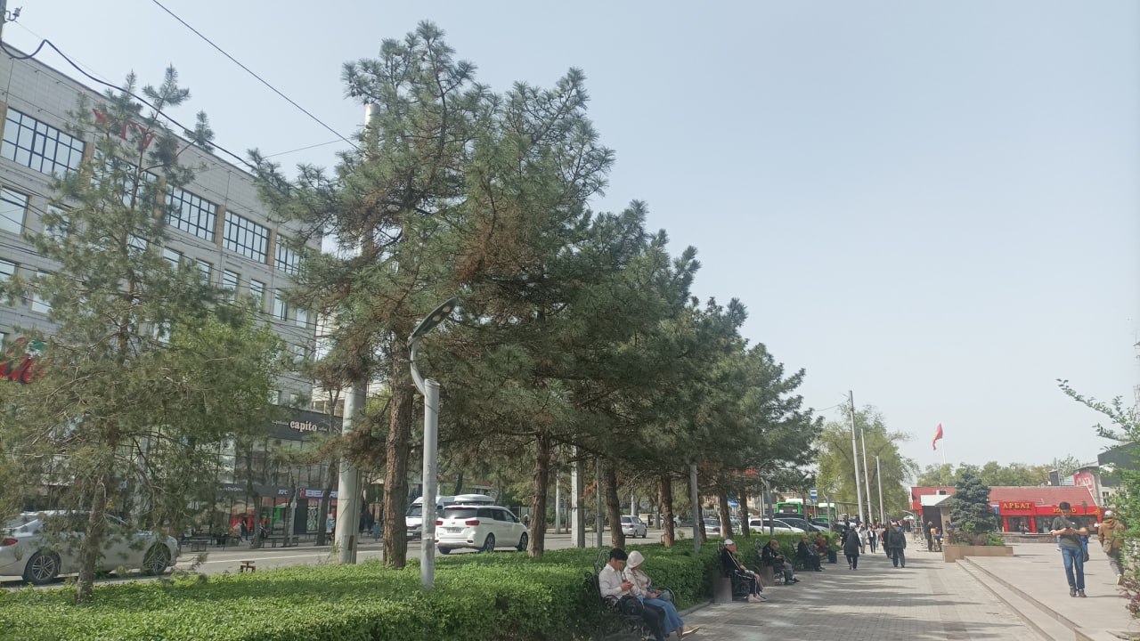 На месте прежних крупных сосен, создававших тень и комфорт в жаркое время года, появились небольшие кустарники, часть из которых высажена в горшках. Вместо озелененной тенистой зоны — открытая лужайка, не защищающая от солнца. Бишкекчане выражают сомнения, что такое благоустройство можно назвать ориентированным на людей.