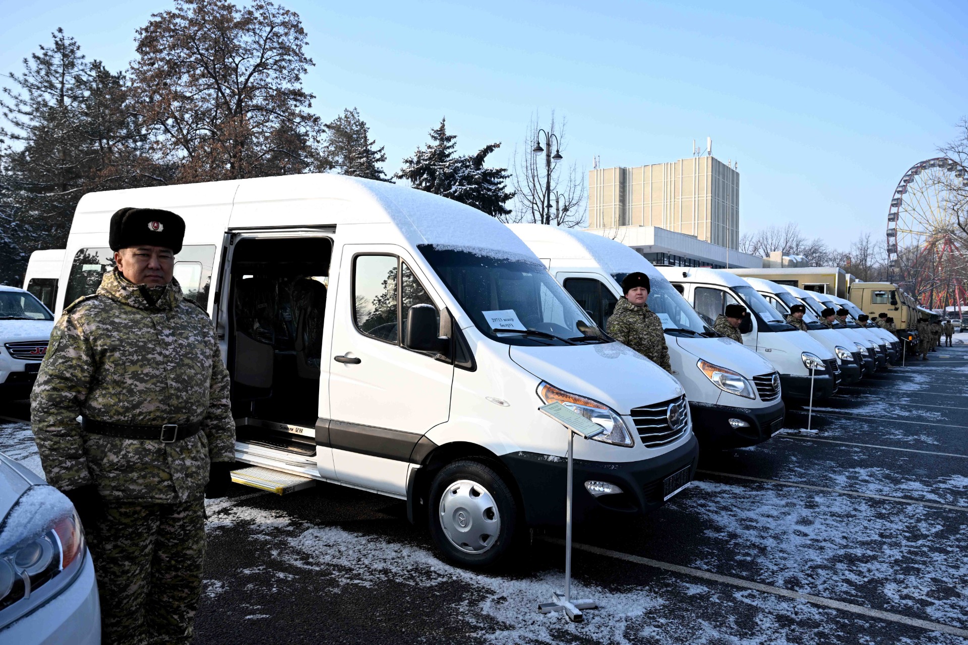 Отдельное внимание уделят социальной защите военнослужащих. В Бишкеке суточная компенсация за аренду жилья увеличена до 500 сомов, в регионах — до 420 сомов. Предусмотрены ежемесячные ипотечные выплаты, возможность приобретения жилья вне зависимости от места службы и предоставление более 900 квартир через Государственную ипотечную компанию. Всего Минобороны передали 81 транспортное средство, включая 36 автомобилей Chevrolet Cobalt, 19 пикапов JAC T-6, 18 машин «Газель», 5 вахтовых автобусов и 3 микроавтобуса JAC Sunray. Часть техники произведена на заводе «Тулпар Моторс» в КР.