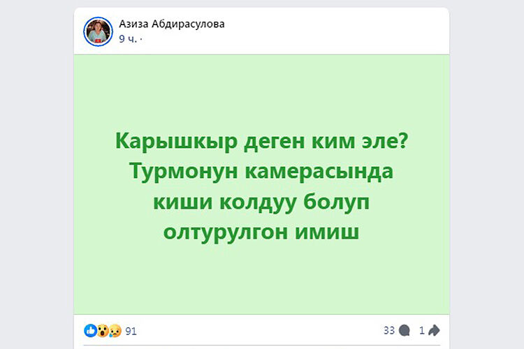 Ранее правозащитница Азиза Абдирасулова написала в Facebook, что Карышкыра могли убить в тюремной камере.