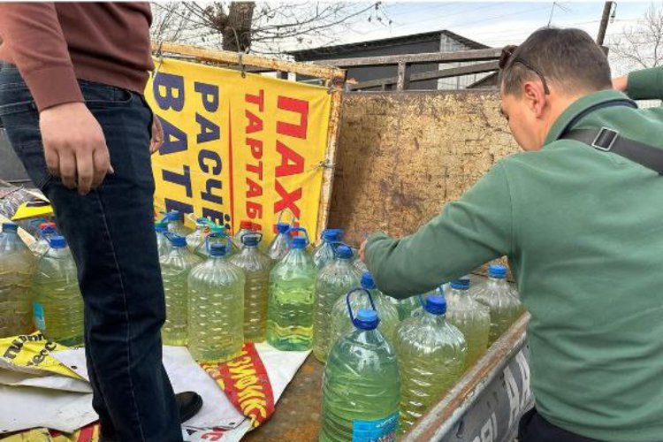 В ходе рейда выявлены факты незаконной торговли горюче-смазочными материалами. По результатам проверки изъято 300 литров ГСМ, по данному факту составлен акт изъятия.