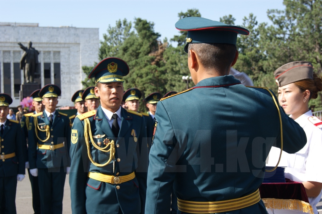 Сегодня в Бишкеке на Старой площади состоялось торжественное мероприятие, посвященное выпуску Военного института Вооруженных сил Кыргызской Республики имени Героя Совесткого Союза генерал-лейтенанта Калыйнура Усенбекова.