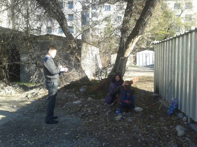 В один из таких рейдов корреспондент ИА «24.kg» отправилась с участковым милиционером Ленинского района Данияром Алгожоевым. Его цель — записать данные бродяг на лист бумаги и попросить их всегда носить этот лист в кармане. Как паспорт. И отдельно записать данные бомжей для себя.