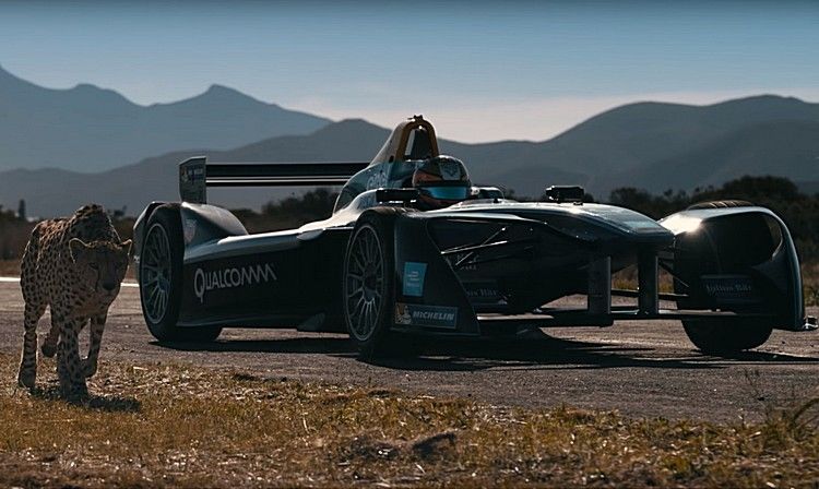 Видеоролик, на котором показан заезд гоночного болида, который соревнуется в скорости с гепардом, опубликован на YouTube-канале FIA Formula E Championship.