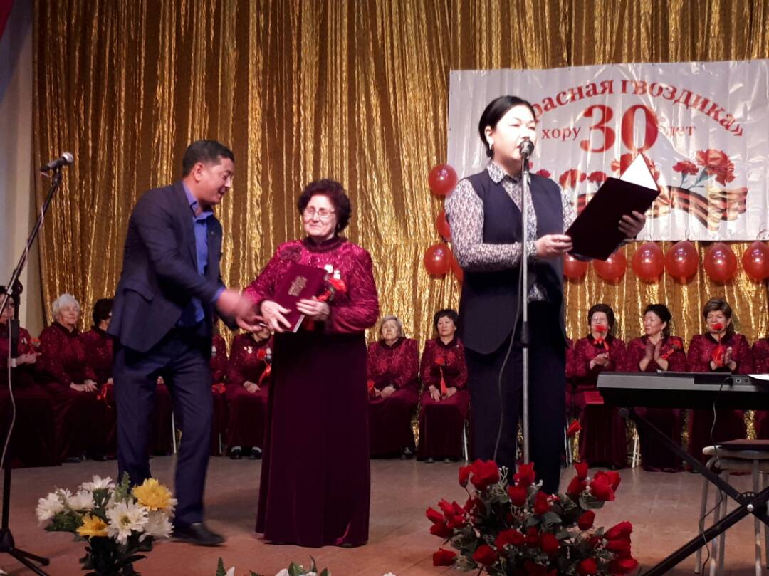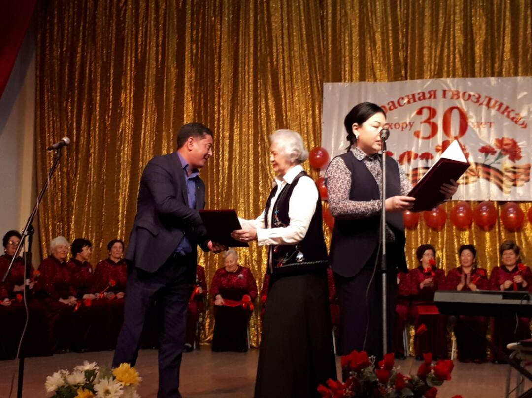В Бишкеке состоялось торжественное мероприятие, посвященное 30-летнему юбилею народного самодеятельного коллектива — хора ветеранов Великой Отечественной войны и труда «Красная гвоздика». Об этом сообщили в мэрии.