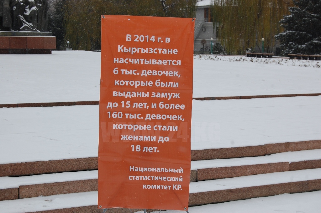 В Бишкеке у памятника Уркуе Салиевой прошла акция «Дорога нарушенных прав девочек».