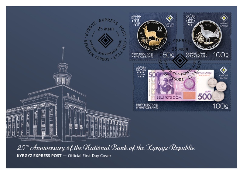 Национальный банк выпустил в обращение юбилейные почтовые марки «Кыргыз Республикасынын Улуттук банкына 25 жыл». Об этом сообщил сайт НБ КР.