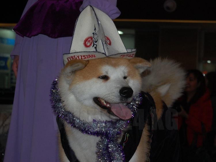 Фото ИА «24-kg.com». Пес японской породы акита-ину в национальном кыргызском костюме. Бишкек, 2017 год