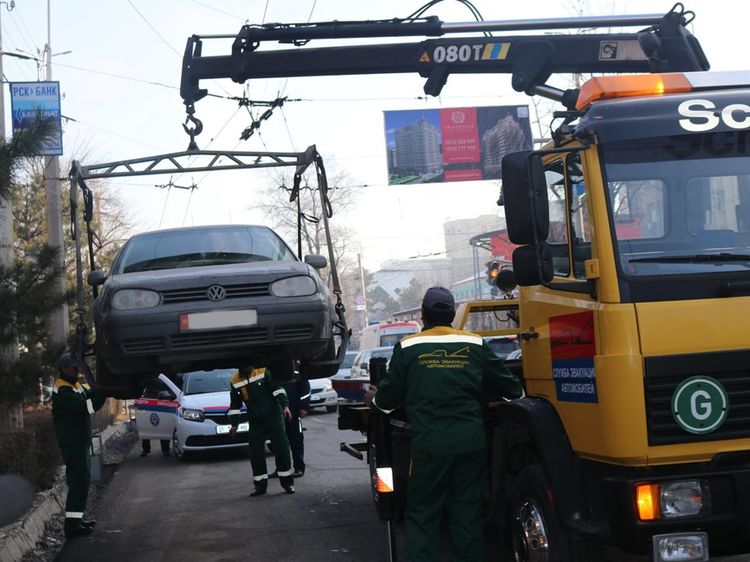 Машины забирают с проезжей части. На асфальт ведь ничего не приклеить. Кроме 1 тысячи 350 сомов, за услугу эвакуации нарушителю ПДД придется заплатить штраф за неправильную парковку в 1 тысячу сомов.