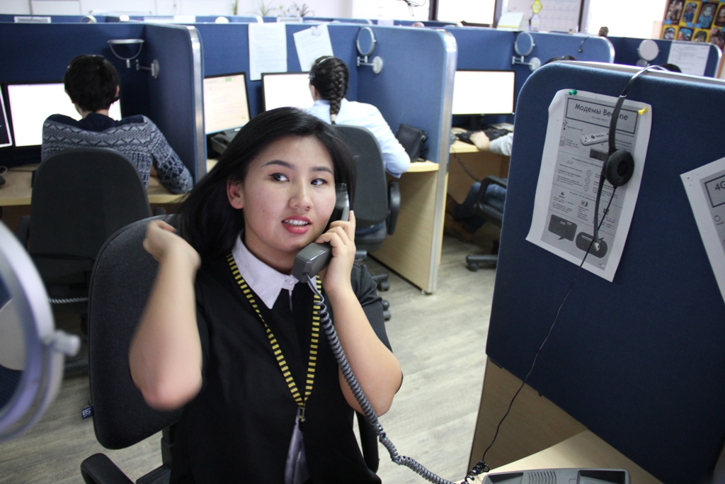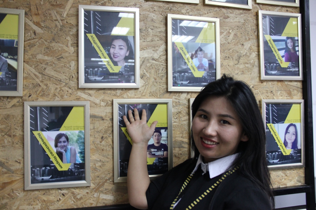 «По итогам квартала определяются лучшие сотрудники по отзывам абонентов. Они получают право целых три месяца сидеть за отдельно выделенным рабочим местом. Никто не может сюда садиться. Я тоже как-то сидела здесь. На сегодня я тоже в числе лучших, но к счастливчикам пока не попала», — рассказала Нурзат.
