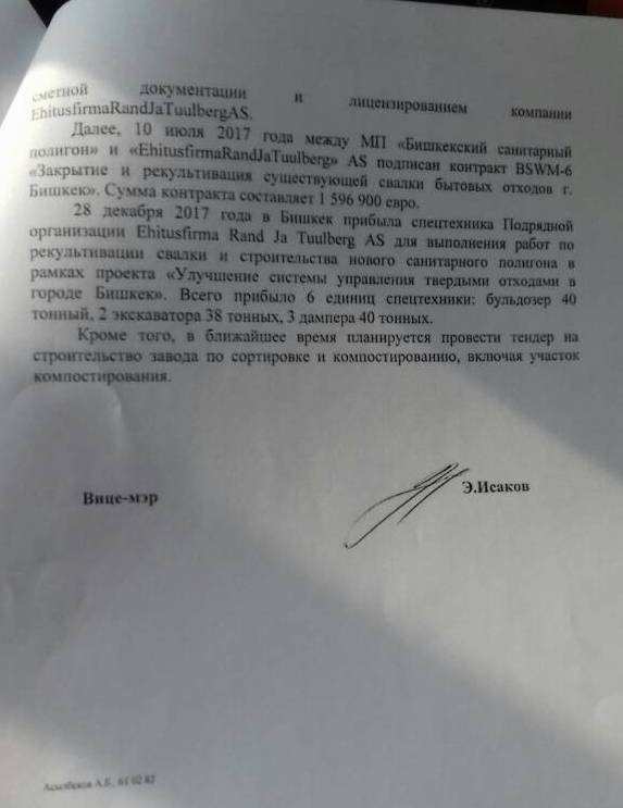 В мэрии Бишкека ИА «24-kg.com» рассказали, на что потратили грантовые и кредитные средства Европейского банка реконструкции и развития (ЕБРР). Чиновники прислали еще одно письмо в ответ на публикацию «Завод по переработке мусора под вопросом. Мэрия бойкотирует 22 миллиона от ЕБРР».