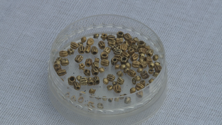 Захоронение молодого человека обнаружили в наземной гробнице. По оценке специалистов, парень умер в возрасте 17-18 лет. У места погребения археологи нашли немало золотых украшений. Ученые предполагают, что их принесли в виде подношения. Но больше всего ученых удивил золотой бисер на сапогах погребенного.