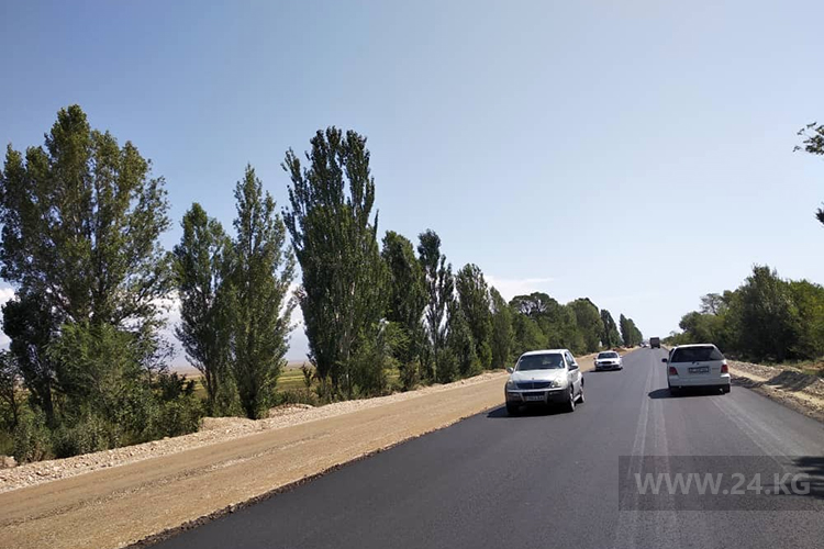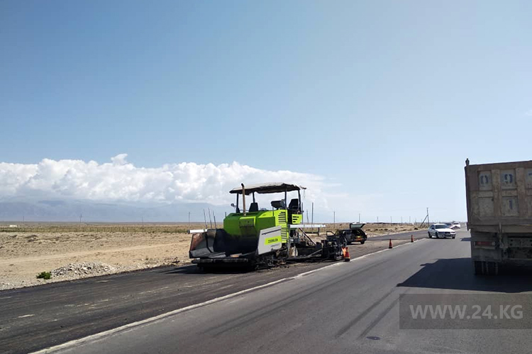 Всего за несколько недель на дороге от Чырпыкты до Тамчи появился новый асфальт по одной стороне. На второй укладка асфальтобетонного покрытия завершается. Осталось буквально 2-3 километра.
