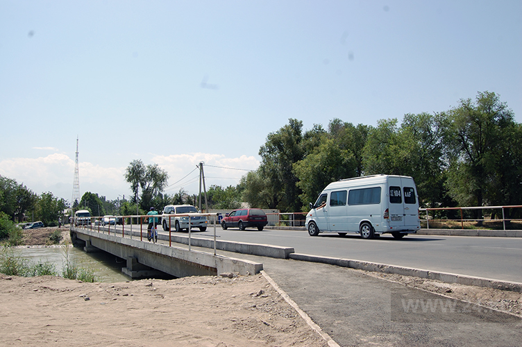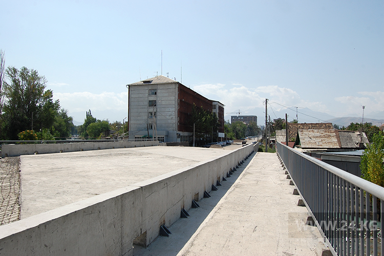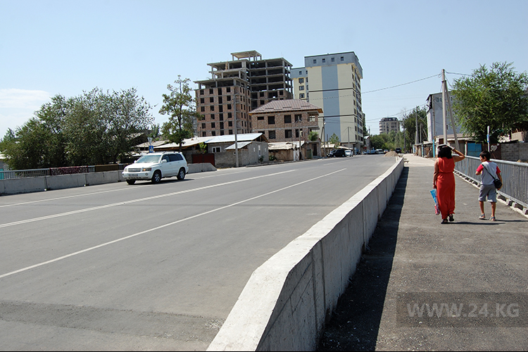 При строительстве моста через реку Аламедин по улице Токтогула столичные власти столкнулись с необходимостью демонтировать и капитальные строения, и временные. Всего снесено 11 жилых домов, 4 хозпостройки, 21 капитальный забор общей протяженностью 148 метров, 5 павильонов, 103 метра железной ограды и 12 металлических ворот. Зато теперь можно проехать по Токтогула до улицы 7 Апреля (Шабдана Баатыра) и миновать вечную пробку на проспекте Чуй.