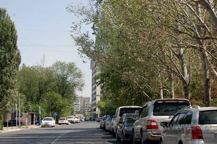 Здесь уже нанесена разметка, на пересечении с Торекула Айтматова дорога делает резкий изгиб и переходит в улицу Мамбетова в столичном микрорайоне «Восток-5».