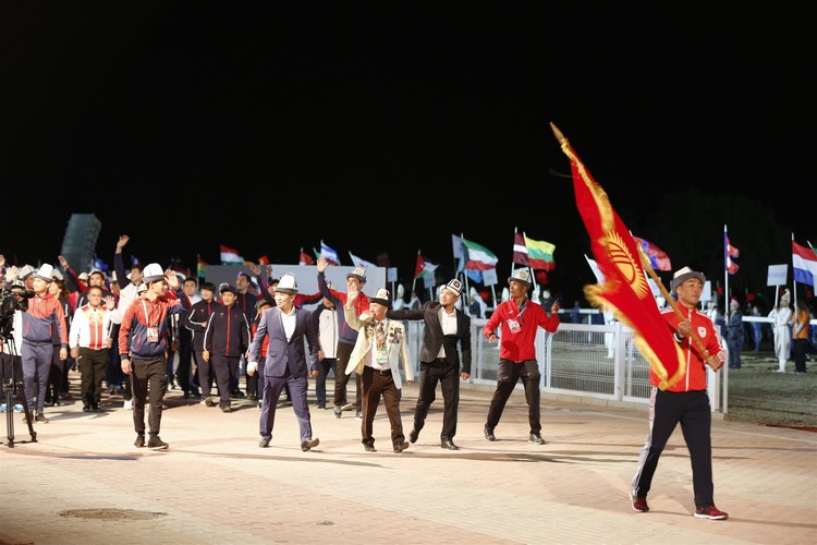 В конце церемонии открытия состоялся парад участников Игр кочевников. Замыкала его сборная Кыргызстана. Впервые в составе команды на открытии Игр кочевников вместе прошли как известные действующие спортсмены Кыргызстана, такие как чемпионка Азиатских игр-2018 Дарья Маслова, призеры Айсулуу Тыныбекова, Акжол Махмудов, Иззат Артыков, так и прославившие республику раньше — олимпийский чемпион Каныбек Осмоналиев, призеры Олимпийских игр Канатбек Бегалиев и Руслан Тюменбаев.