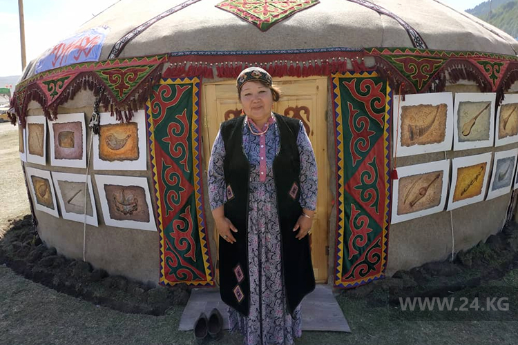 В центре Нарынской области посетителей встречают женщины, одетые в национальные наряды и элечеки. Они участницы народной группы Ак-Талинского района «Ак моордун синделери». «У нас много нарядов, все их мы придумали и сшили сами. Мы их постоянно меняем», — рассказала участница Калипа Орозакунова.