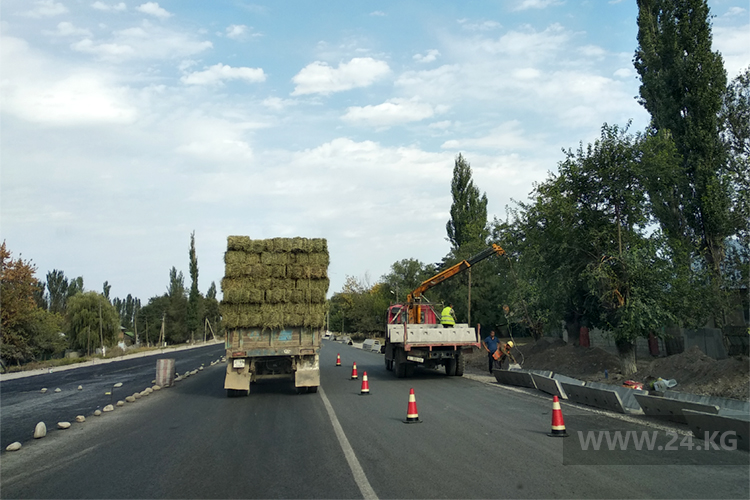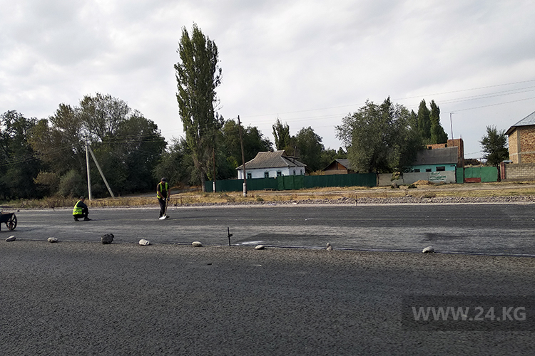Второй месяц строительные работы на дороге Бишкек — Кара-Балта идут ударными темпами. В селе Петровка и на участке от рынка «Азамат» до села Романовка уже завершают укладку асфальта.