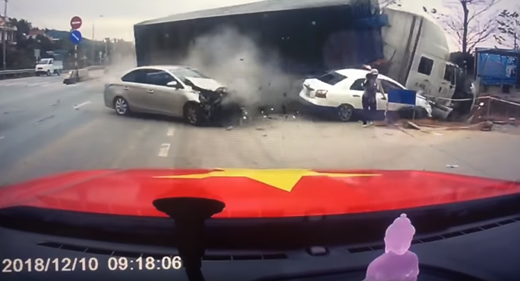 Во Вьетнаме женщина и маленький ребенок чудом не стали жертвами страшной аварии, спровоцированной потерявшим управление огромным грузовиком. Об этом сообщил Sputnik International.