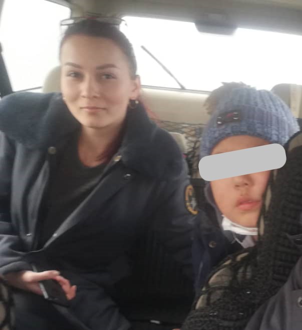 Ребенок бродил под дождем, пока его не встретили сотрудники службы общественной безопасности.