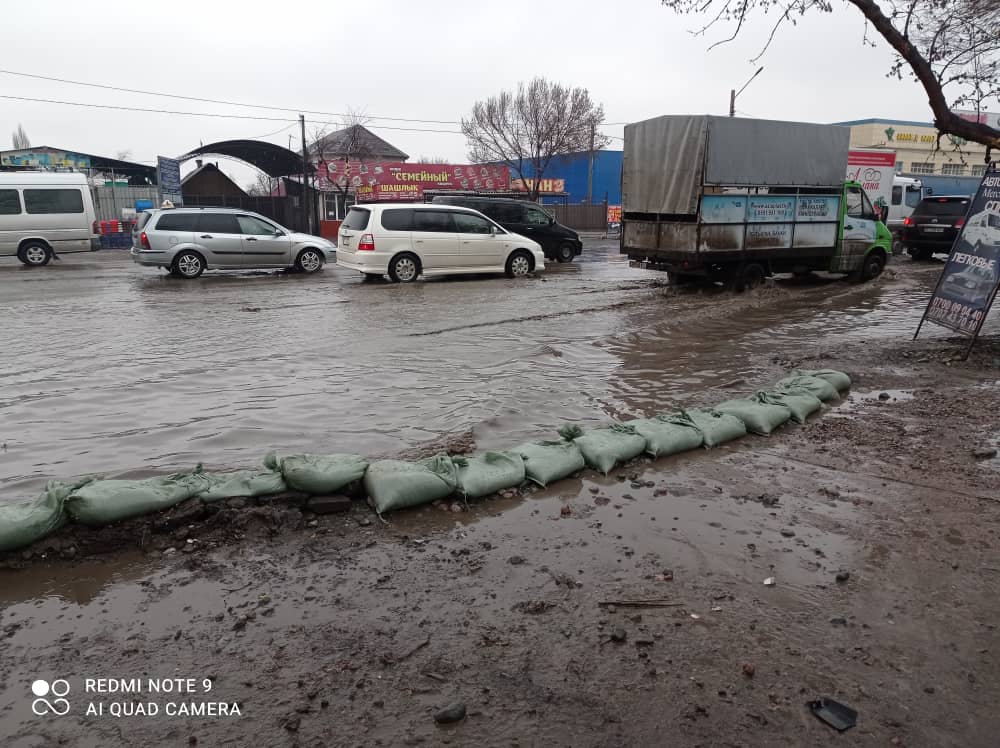 Сегодня на пересечении улиц Дэн Сяопина и Алыкулова затопило большой участок проезжей части. В результате появилась угроза подтопления близлежащих нескольких жилых домов.