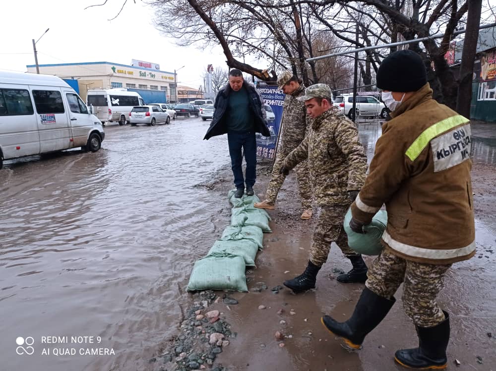 Дожди вызвали в Бишкеке подтопление улиц. Об этом сообщила офицер отдела СМИ МЧС Эльнура Муктарова.