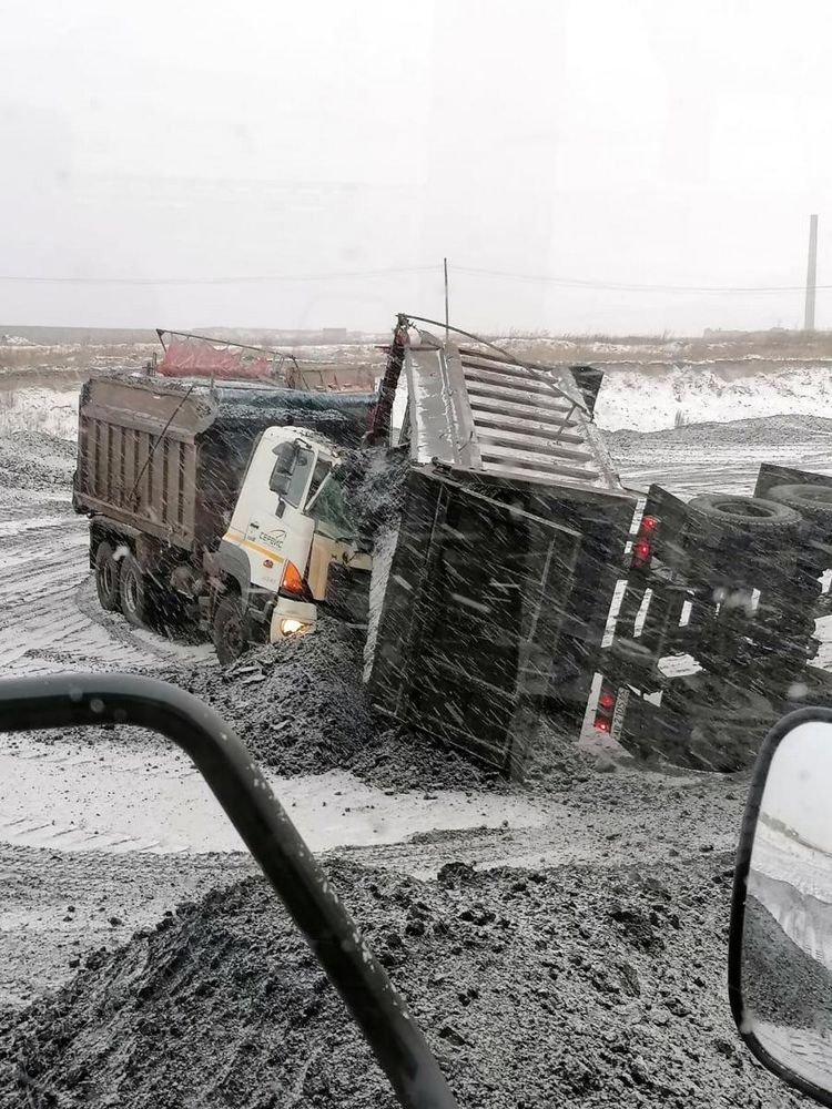 Кыргызстанец наехал на искусственную насыпь, и прицеп опрокинулся на кабину рядом стоящего грузового автомобиля. Водитель последнего оказался зажат внутри кабины. От полученных травм он скончался на месте.