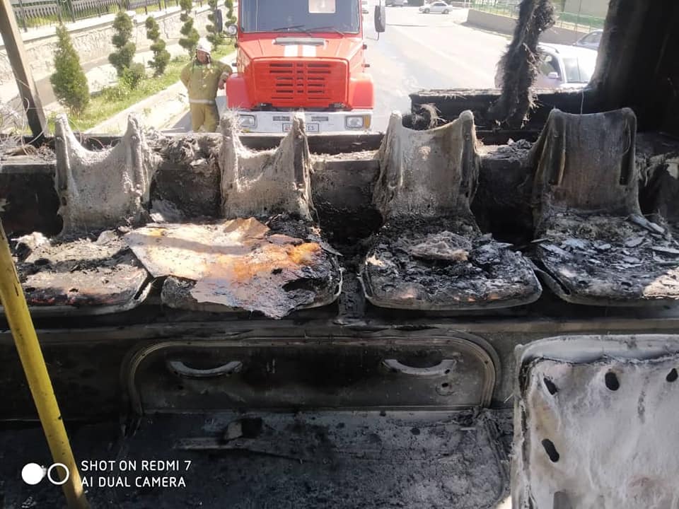 В городе Ош сгорела тыльная часть пассажирского автобуса № 13