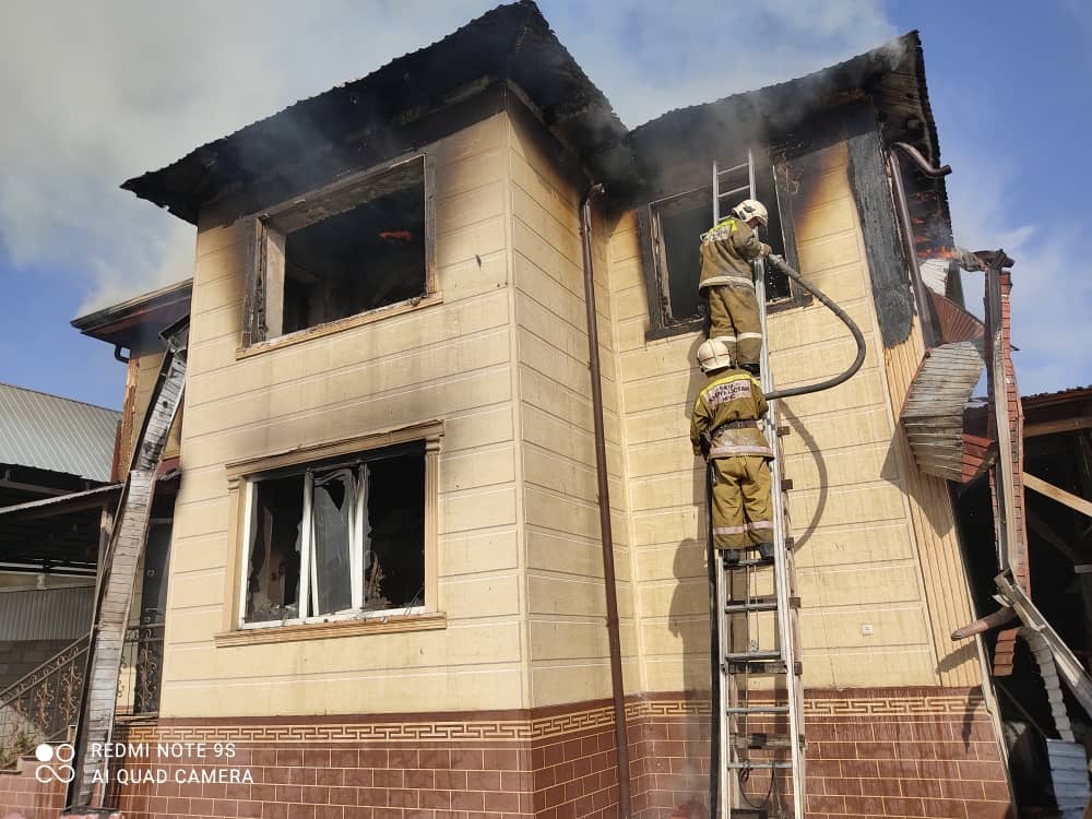По ее данным, примерно в 8.30 поступила информация о том, что в одном из частных домов, расположенных на улице Кара-Басана (городок Курманбек), возникло возгорание.