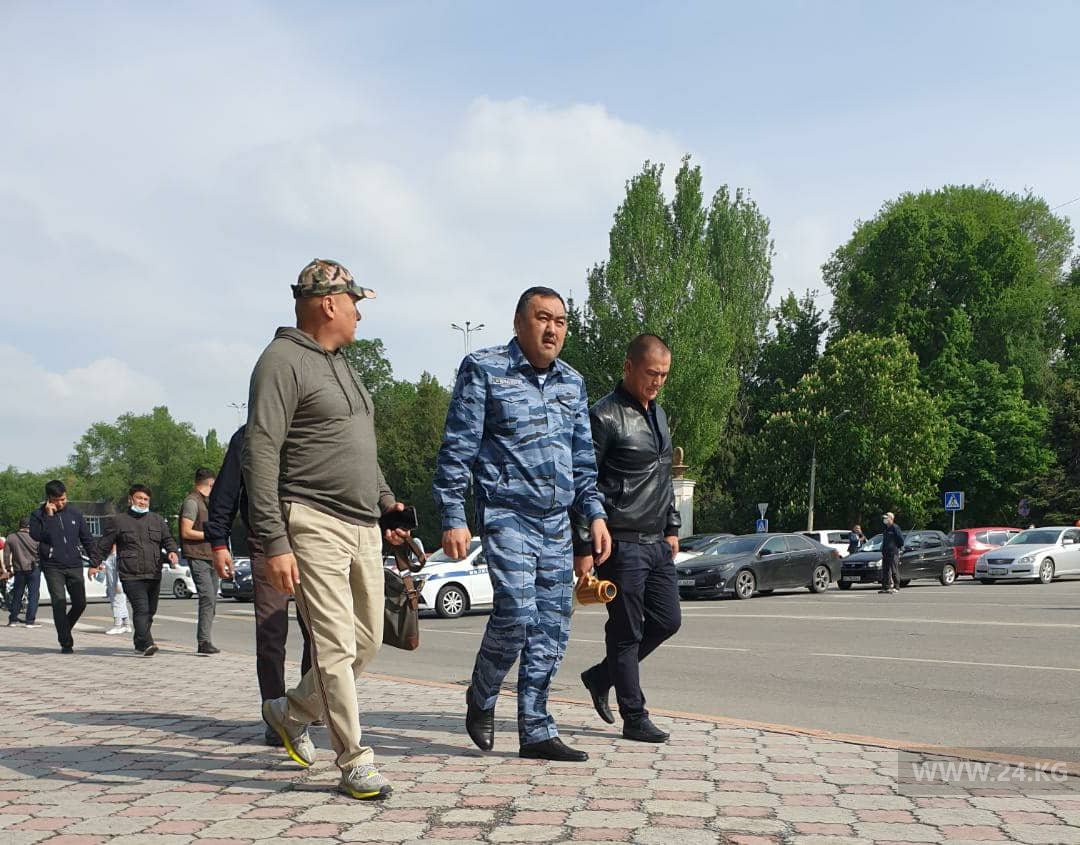 К участникам акции протеста вышел министр внутренних дел Улан Ниязбеков. Он призвал граждан к спокойствию.
