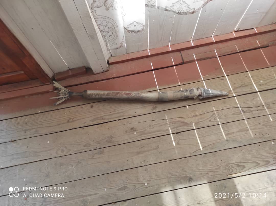 Сегодня в местности Ортобоз обнаружили авиационную ракету, попавшую в дом местного жителя 29 апреля в ходе обстрела таджикскими военнослужащими с воздуха местностей Торт-Кочо и Чыр-Добо.