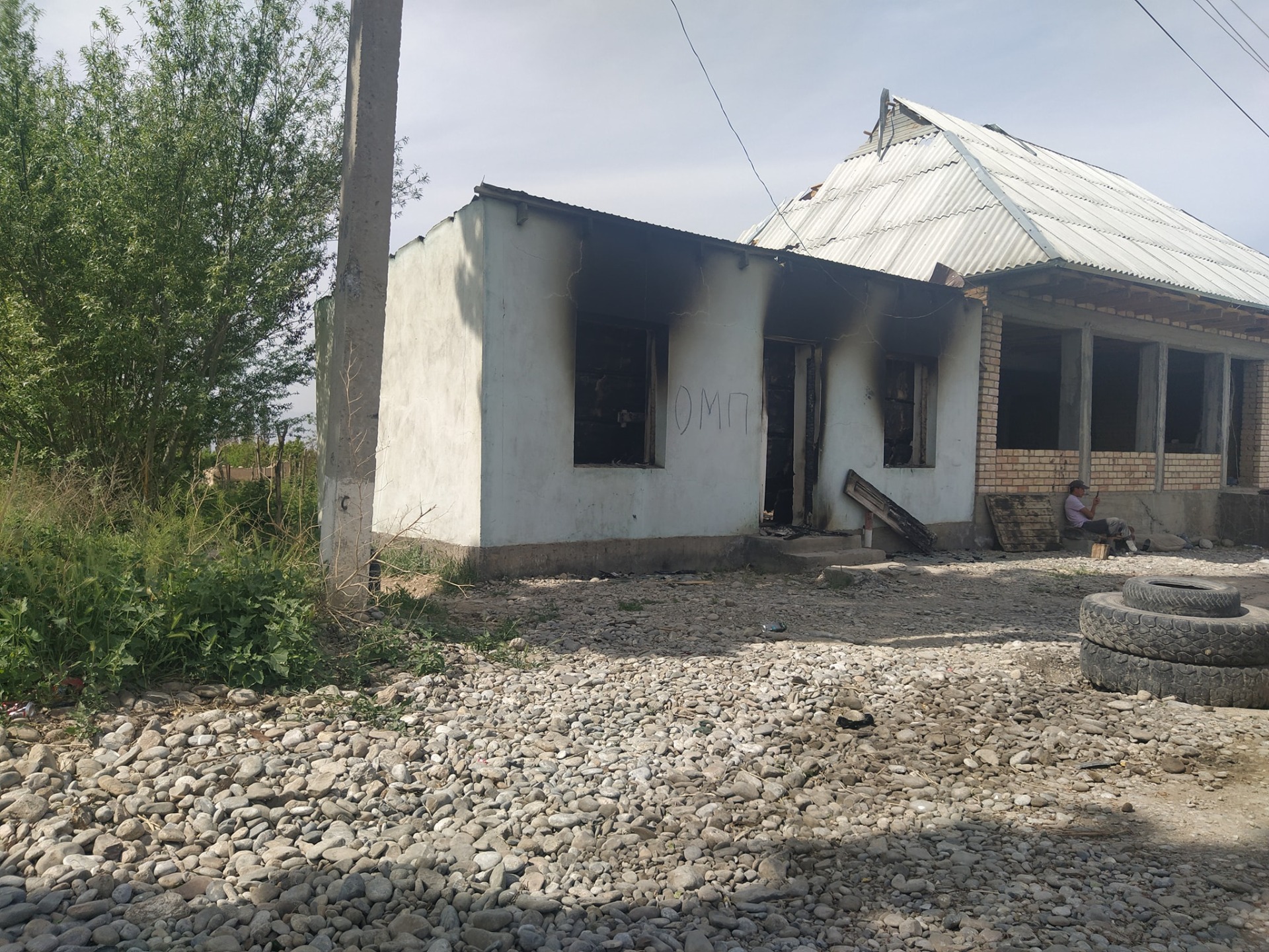 В социальных сетях распространяются фотографии сожженных домов в Лейлекском районе, на стенах которых неизвестные оставили надписи «ОМП».