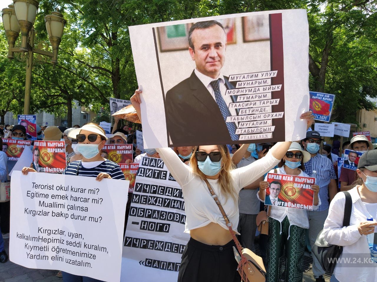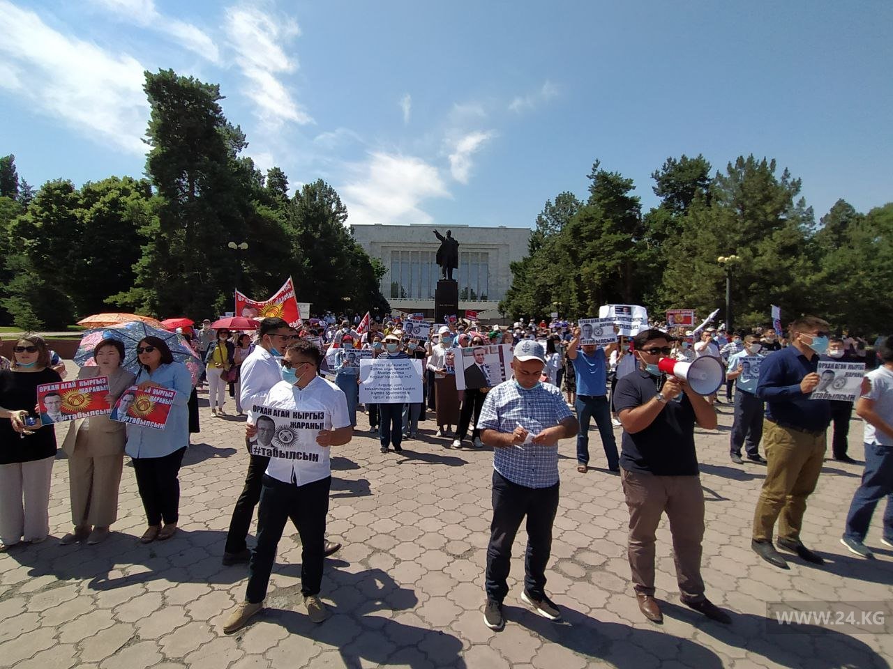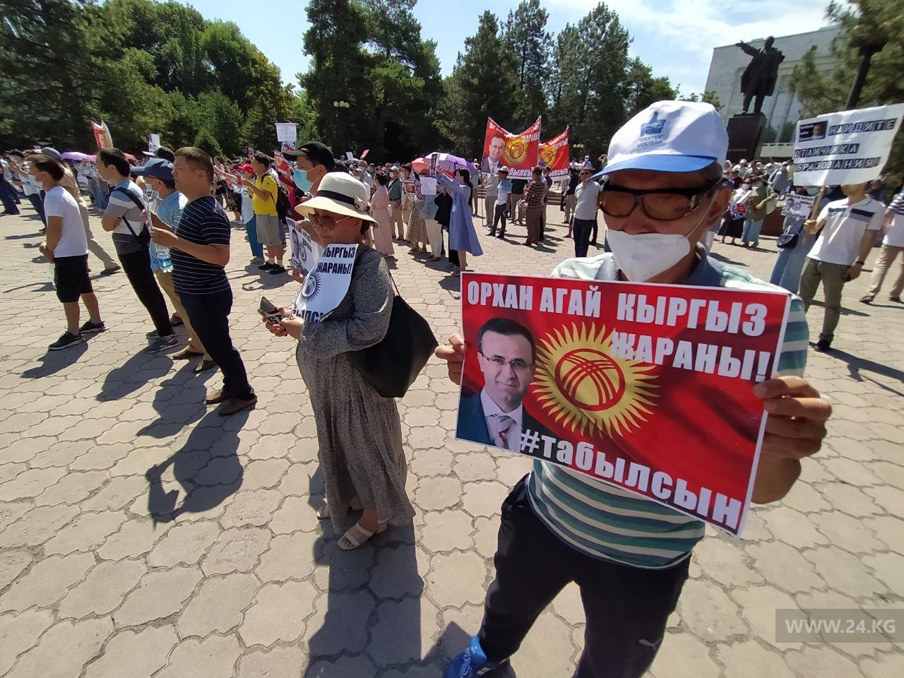 Начавшийся в Бишкеке возле Жогорку Кенеша митинг в поддержку Орхана Инанды продолжился у здания правительства.